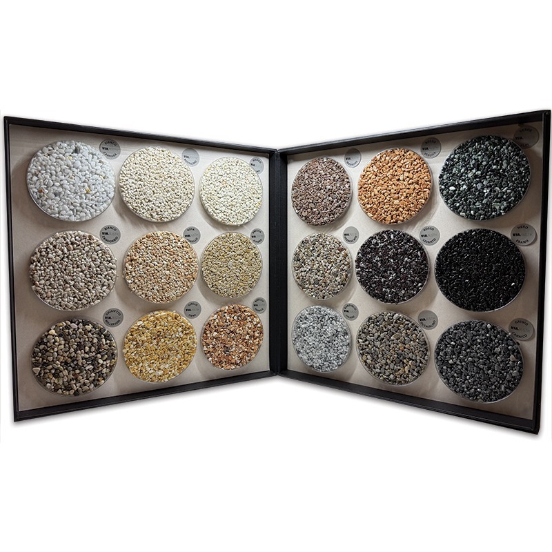 Grâce à une large gamme de teintes et à une mallette nuancier, vous pouvez composer des sols décoratifs uniques, durables et faciles d’entretien. Nos granulats sont rigoureusement sélectionnés pour offrir une qualité constante, une excellente tenue dans le temps et un rendu haut de gamme, plébiscité par les professionnels.